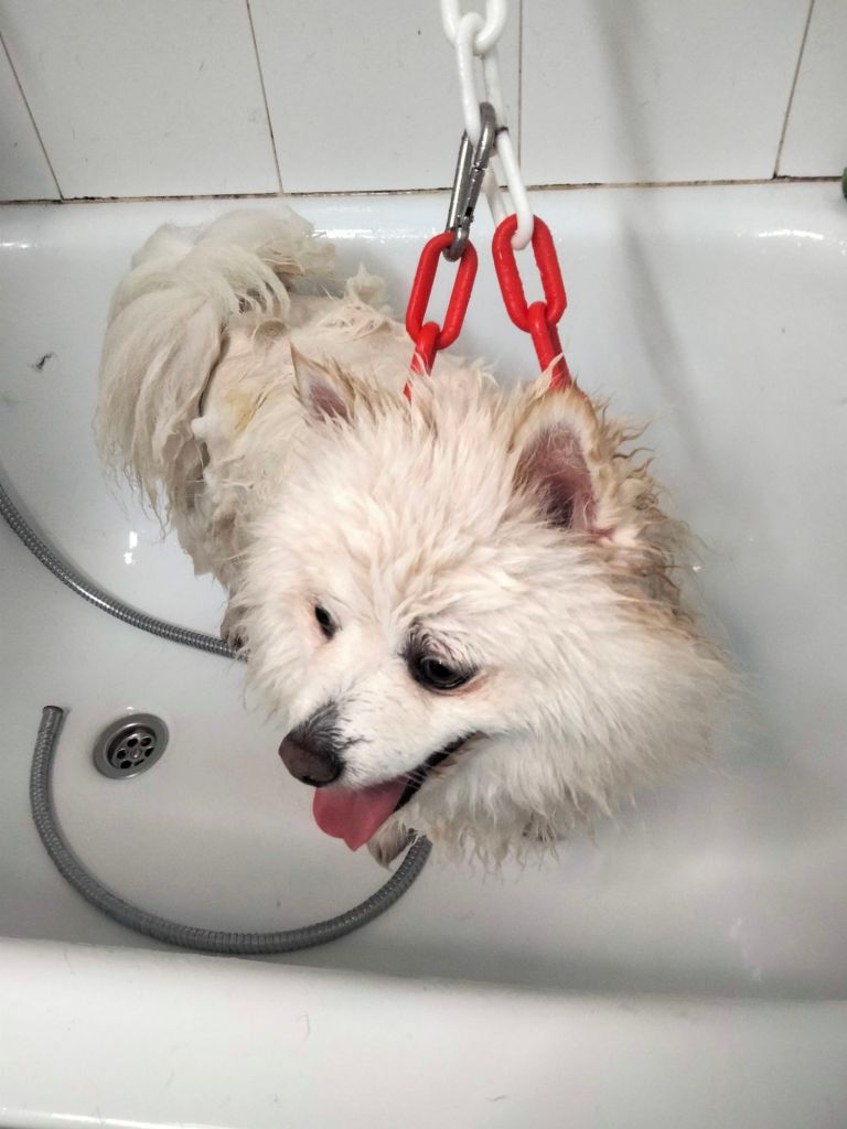 This one had an incredible amount of fur, it was so difficult to get it wet. He looked like a cloud after I had dried him, one of the softest dogs I’ve ever seen (and one of the loudest I’ve ever heard!)