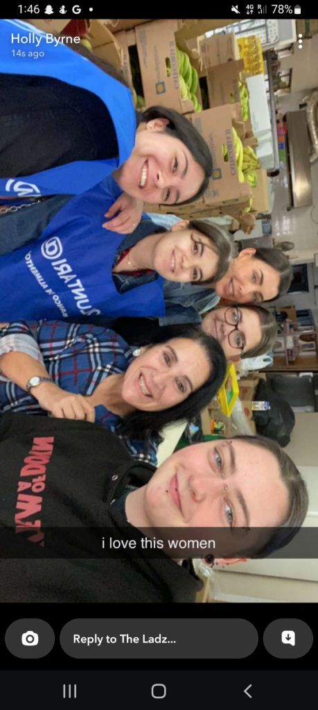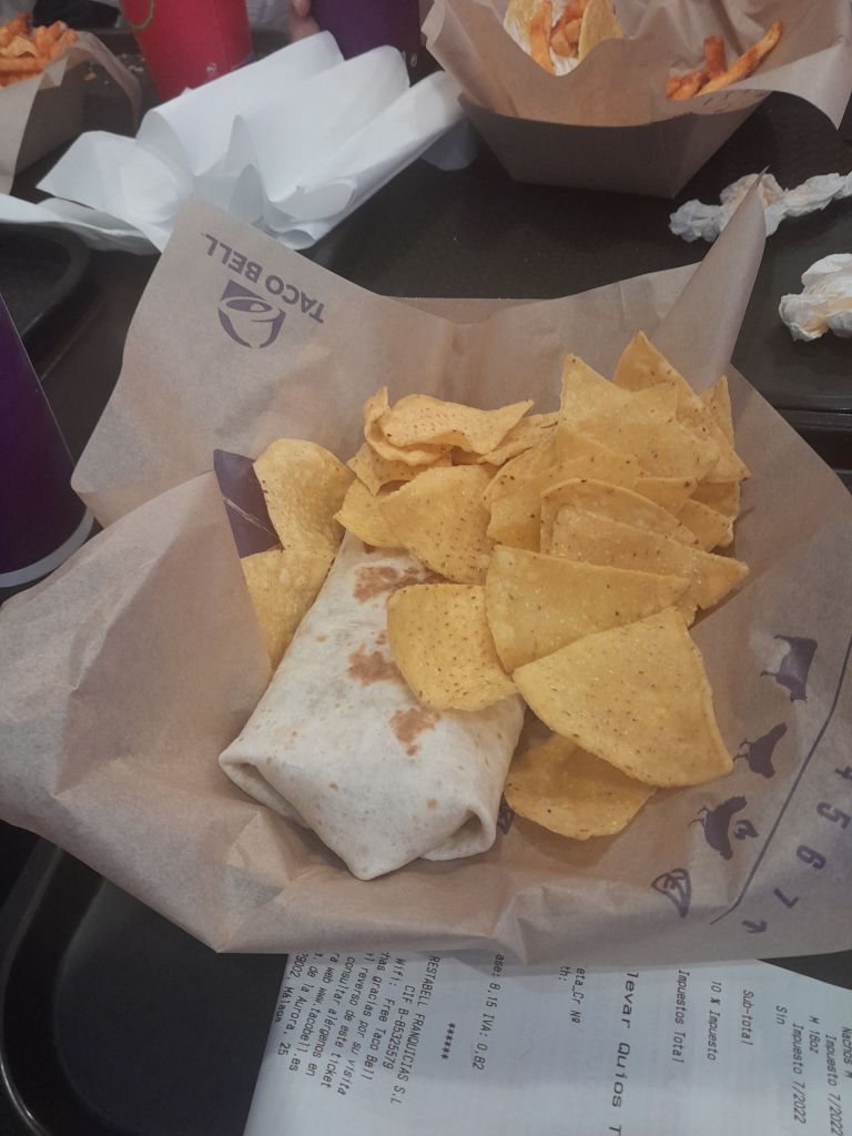 Today we went to work and 2 girls from France had started they are staying for 2 weeks after that we went to taco Bell I got a burrito