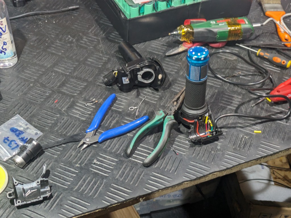 Today at work we managed to save a scooter throttle from being totally thrown away by replacing the hall sensor inside by soldering a new one to the connections in the throttle. Afterwards we had to figure out exactly what was wrong with a possibly faulty control unit which had a weird coating all around the circuit board which made it impossible to both test with the multimeter and possible fix the short circuit within the board – however later on in the day we find out that the screen is causing the short circuit and not the control unit itself, which is somewhat good news as the screen is alot easier and a WHOLE lot cheaper to repair let alone replace. Afterwards we had to find the correct key to unlock the slide for the battery for an ebike that needed it’s battery replace, however the key was completely lost and after I had tried every single key that was in the warehouse, we had to brute force a screwdriver and hammer into the keyhole to unlock the entire thing – afterwards we replaced the battery and subsequently had to replace the keyhole with a new one.