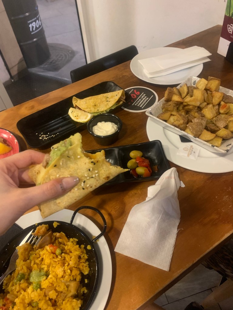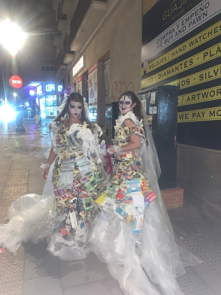 We went further into town a bit later on and found two amazing looking girls who had handmade wedding dresses out of used cigarette boxes which I found extremely cool, then we had some lovely tapas to finish off the evening.