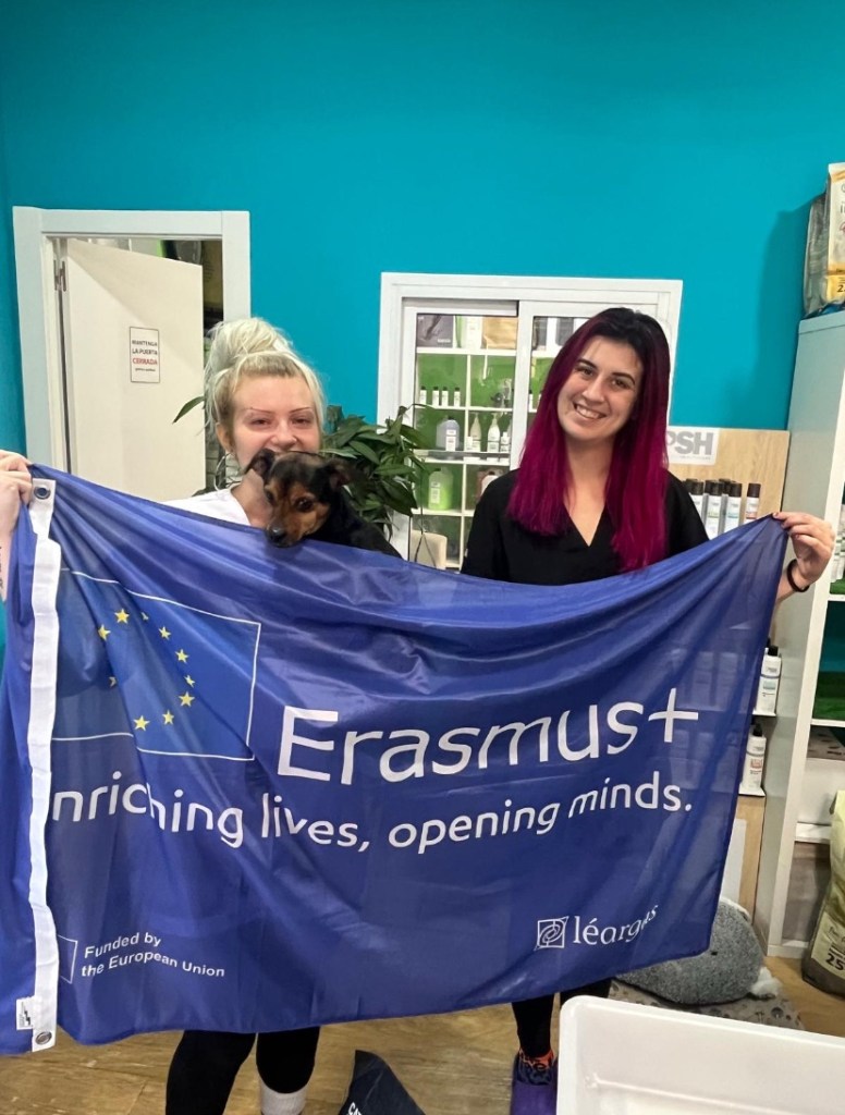 I groomed more lovely dogs and got quite emotional at seeing how scared and vulnerable some of them were. I got quite teary and Paula and Laura decided to choose that moment to visit me in work and ask for a photo with the Erasmus flag which was great ππ I have been really enjoying working for my supervisor Silvia so far, sheβs been a great help and creates a lovely calm and pleasant environment to be in.
