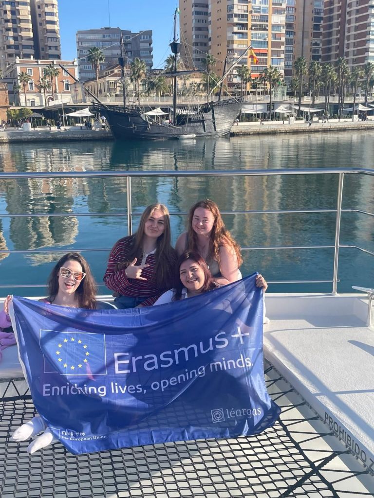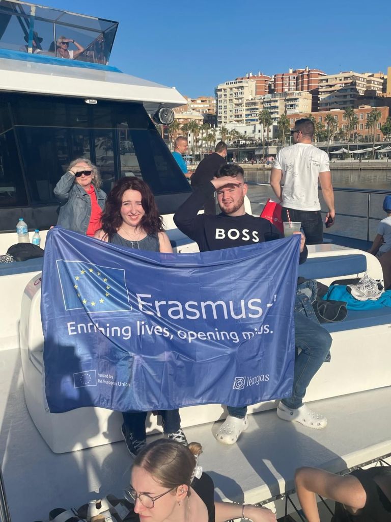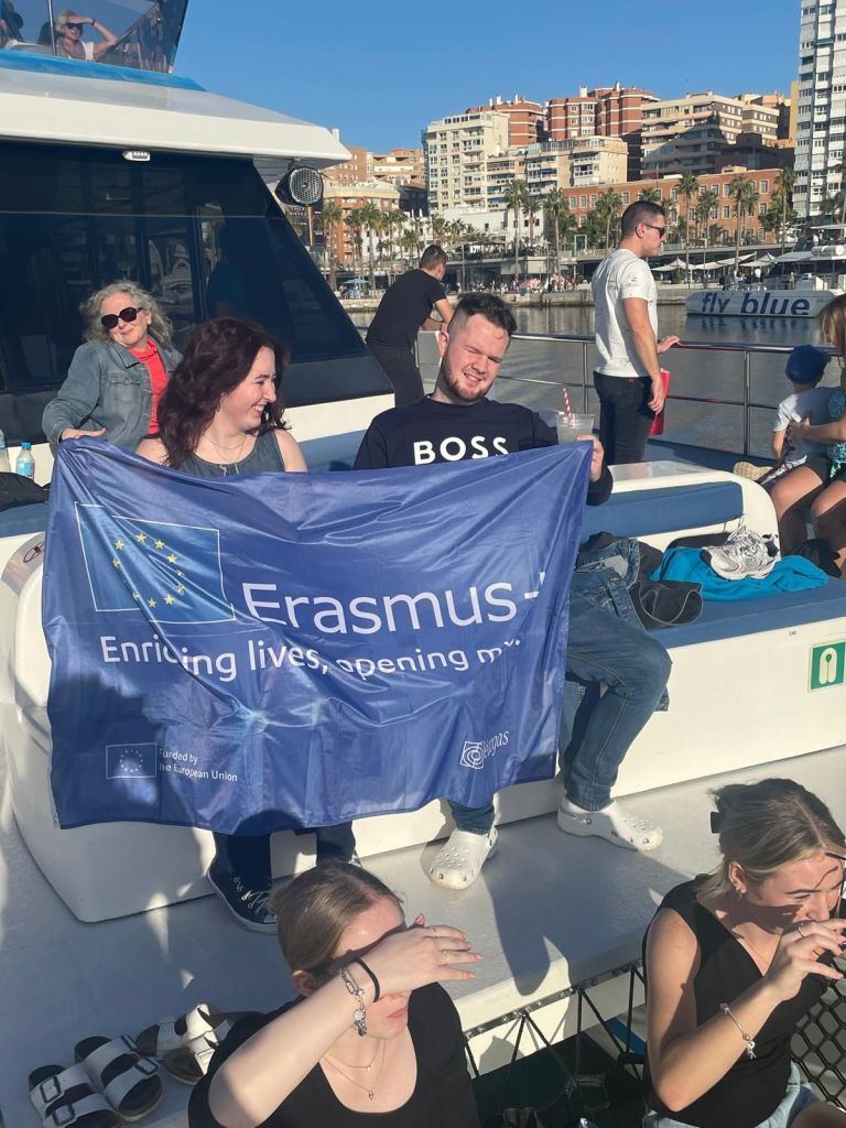 Later that day, all of us on the Erasmus+ trip had a boat trip from the harbor at 4:30 pm. The trip was amazing and we saw a dolphin pod that kept pace with us for most of our trip. It was such an amazing sight, I’ve been on boat trips in the past when on holiday and never ever seen dolphins so this was a real treat. They were so close and the water so clear that you could see the dolphins so very clearly. The boat trip itself was really good and it was a real treat. It’s a really good way to get everyone together and have fun whilst getting to know each other better. So far on this trip I have made some great friends and I’ll cherish this experience forever.