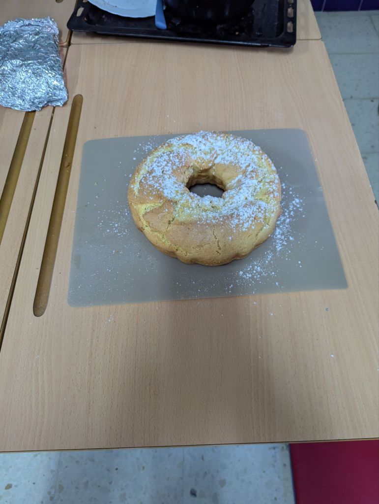 Once all the ingredients were successfully mixed, the cake was then put in the oven to bake. As the cake was baking, it was time for their lunch break so the junior infants with their teachers went back to their classrooms and our class settled down for lunch.