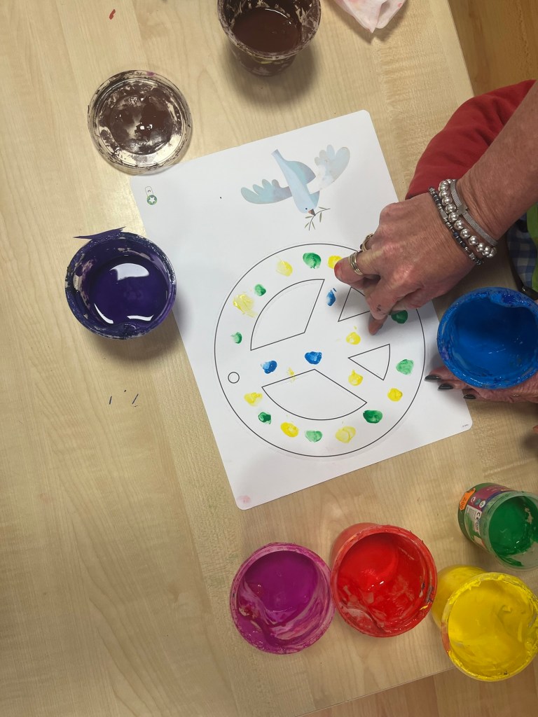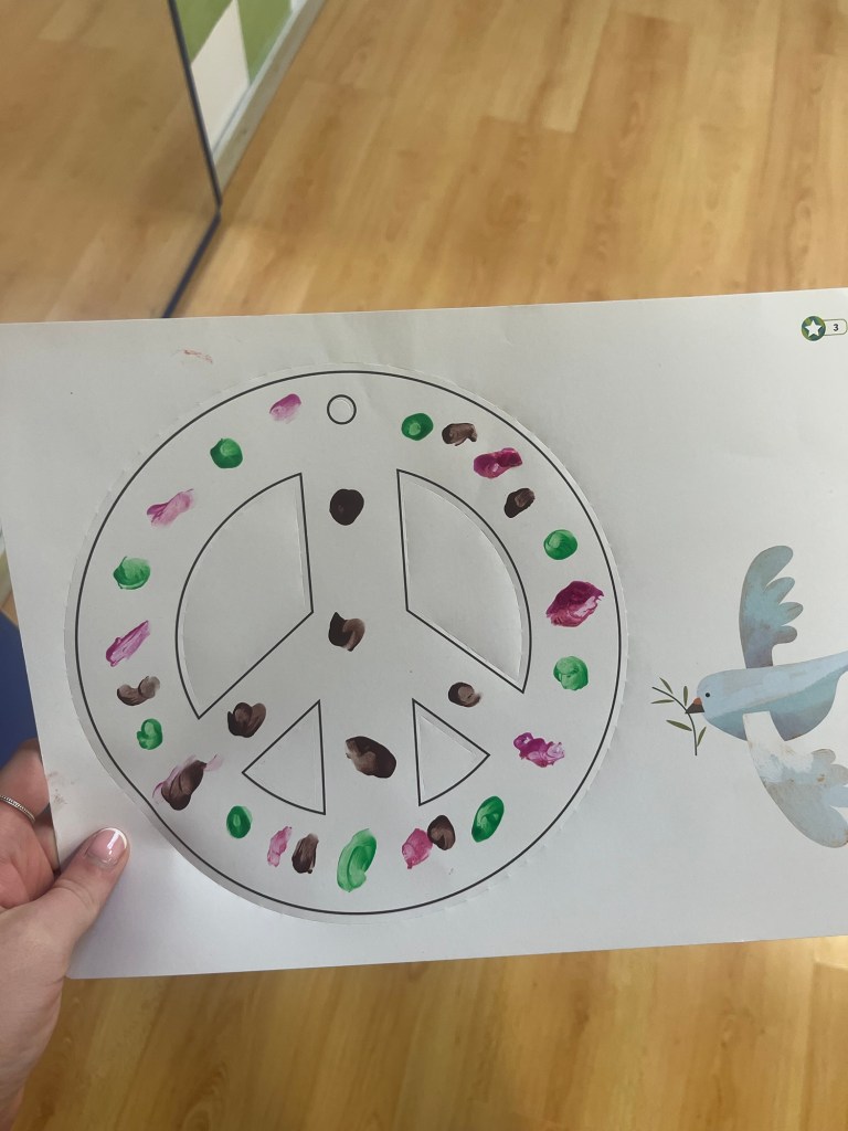 During work today the children and I did some finger painting. We would then turn there designs into necklaces for them to be able to wear.